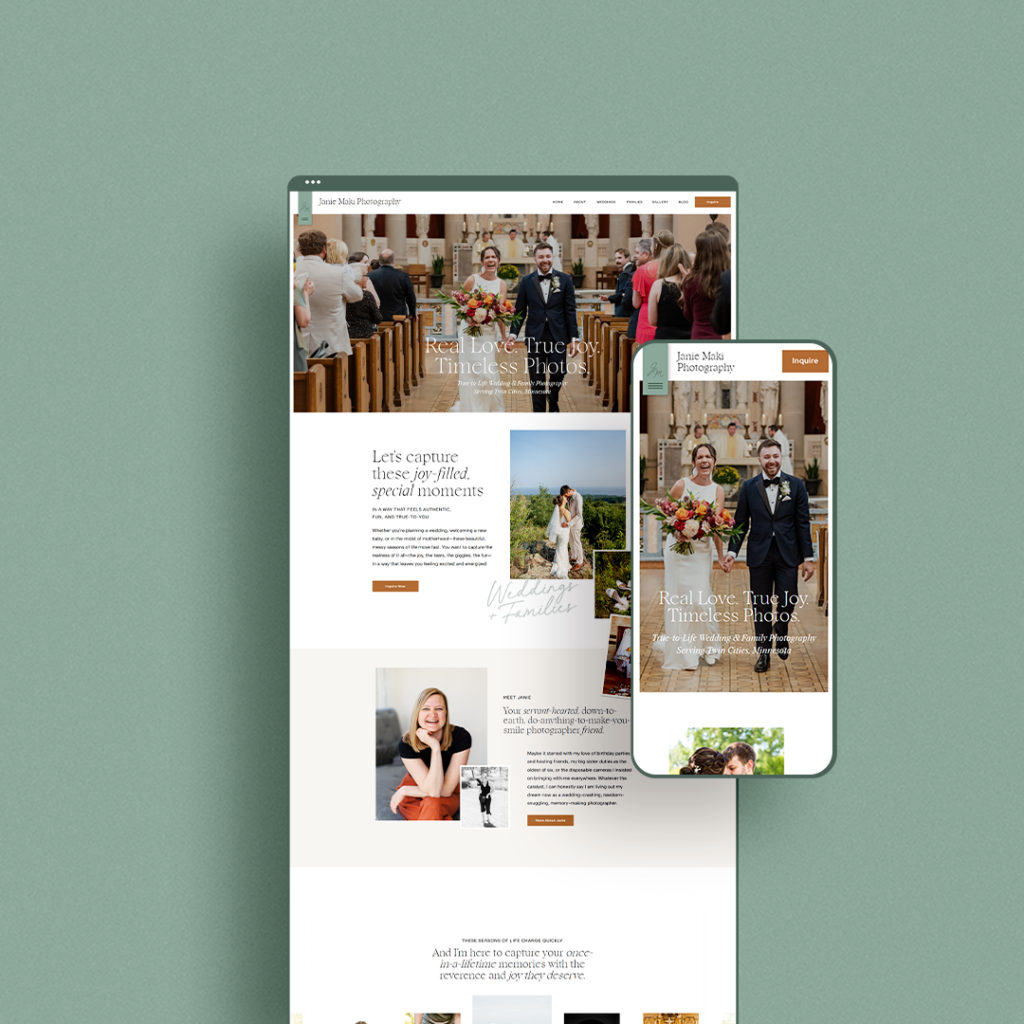 Janie Maki and I worked together years ago on her branding and website for her Twin Cities photography business. And recently she came back, ready for a full photography website design refresh. Plus something new this time around: brand messaging and copywriting.